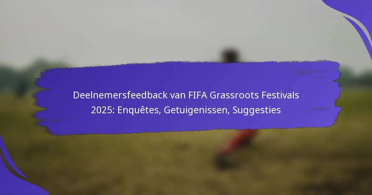 De deelnemersfeedback van de FIFA Grassroots Festivals 2025 benadrukt een sterk gevoel van tevredenheid en betrokkenheid onder de aanwezigen. Enquêtes en getuigenissen onthullen positieve ervaringen die gericht zijn op persoonlijke groei en gemeenschapsbetrokkenheid, terwijl suggesties voor toekomstige festivals de noodzaak benadrukken van verbeterde logistiek en interactieve workshops.
